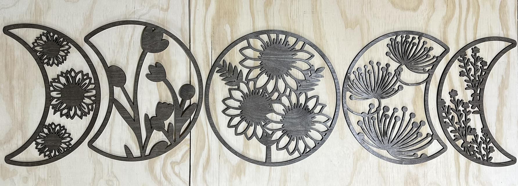 - Mit dem Laser aus 1/4 Zoll dickem Birkenholz ausgeschnitten und mit Ebenholzbeize behandelt.