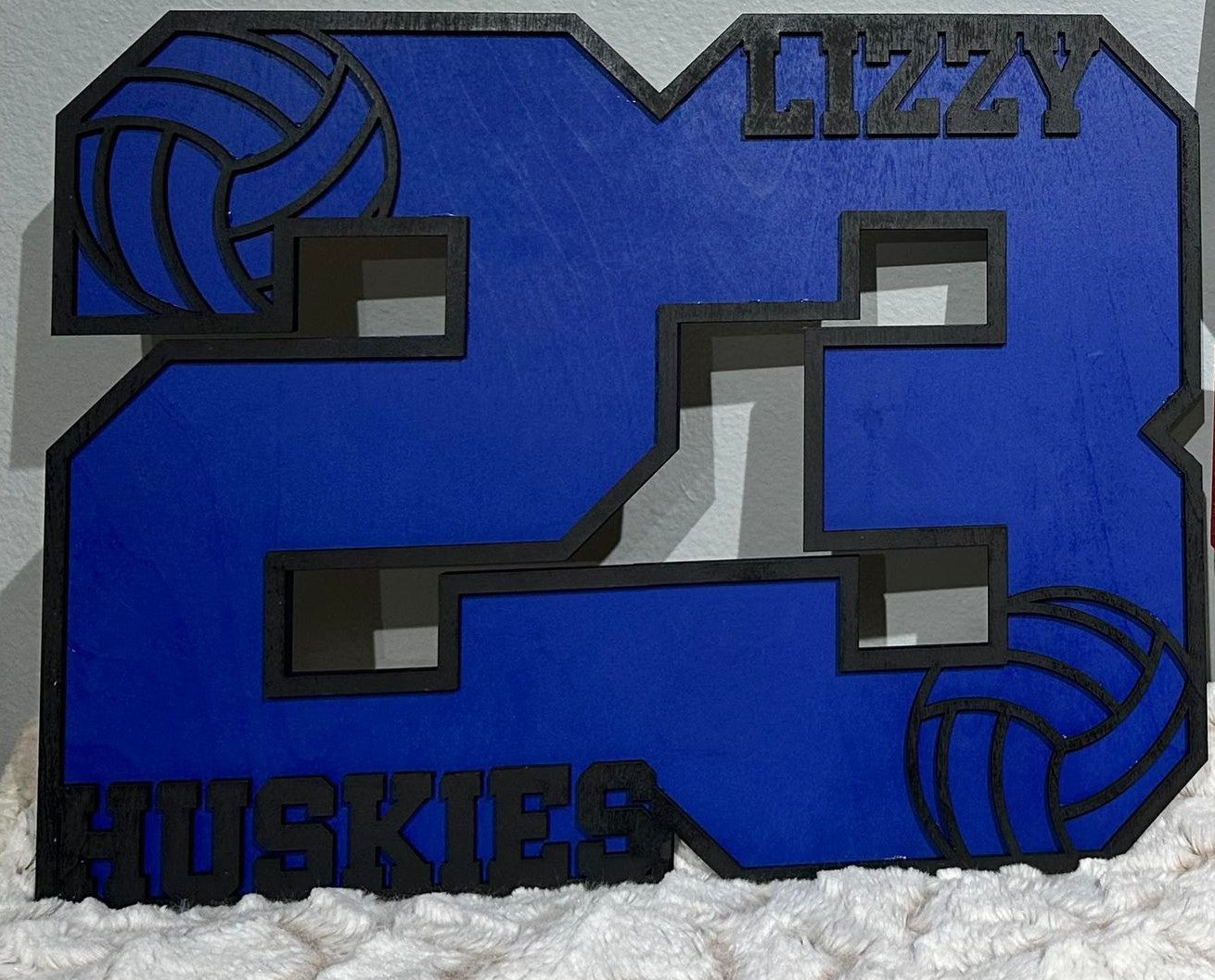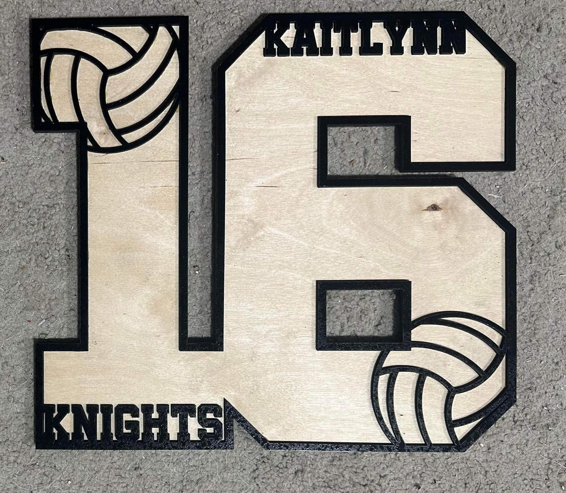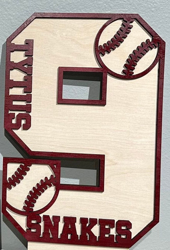 - Lasergeschnitten aus 1/4-Zoll-Birkenholz. Der Umriss mit Sportarten und Namen ist eine zweite Schicht obenauf und verleiht Dimension.