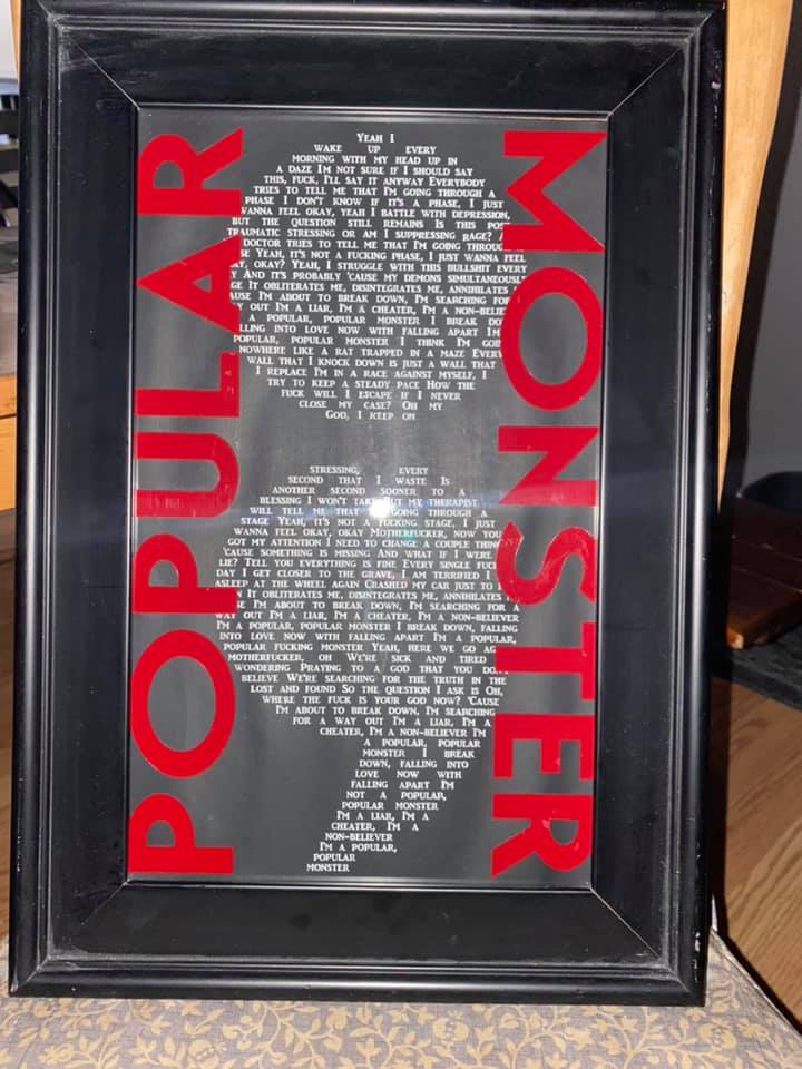 I designed and made Popular Monster for myself when I was going through one of the hardest times in my life. This song was one that truly spoke to me in the way I had been feeling and I knew I had to make it into a song piece! It hangs in my office to remind me every day that I am stronger than that popular monster and will get through it! This particular song will come on a 16x20in frame. The song is too long to put on anything smaller and be legible.